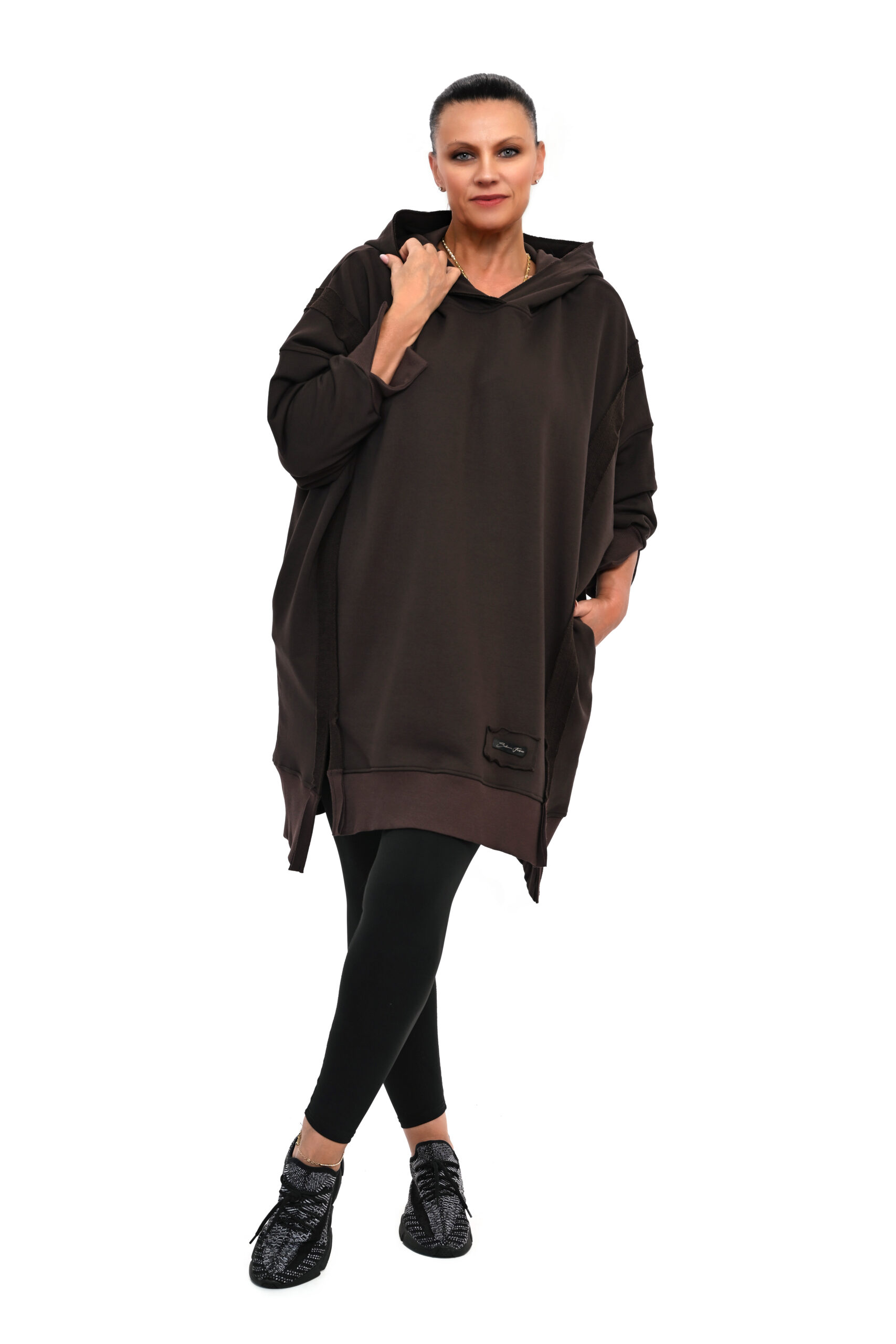 BLUZA DIXI OVERSIZE Z KAPTUREM BRĄZOWA