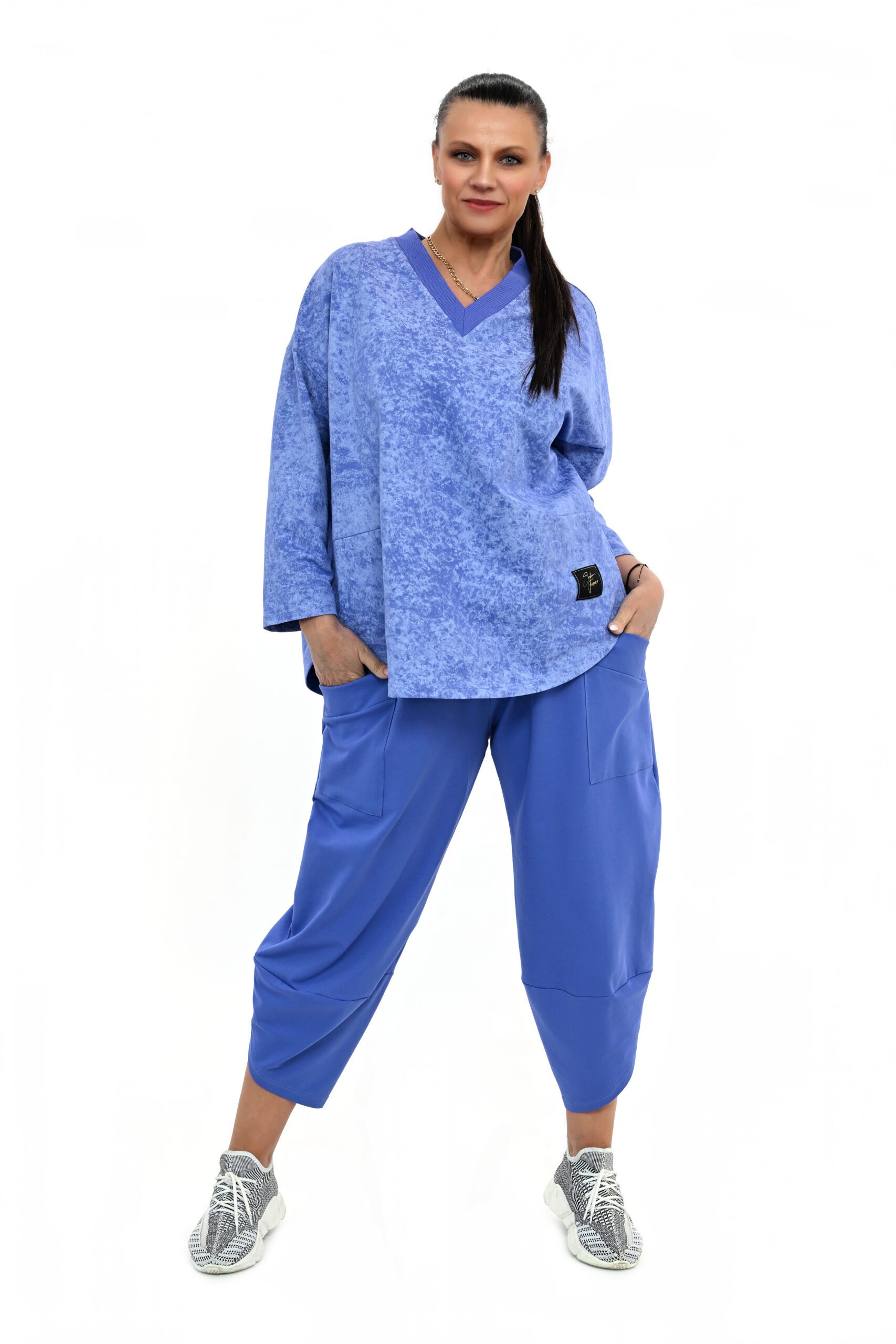 Bluza z dekoltem w serek to doskonały element garderoby Możesz nosić ją solo lub zestawić z inną częścią garderoby, tworząc niezwykle stylowy outfit. Spodnie to doskonałe uzupełnienie kompletu. Ich luźny krój pozwala na swobodę ruchów, co sprawia, że są one nie tylko stylowe, ale także bardzo wygodne🚲🛴🚶‍♀️