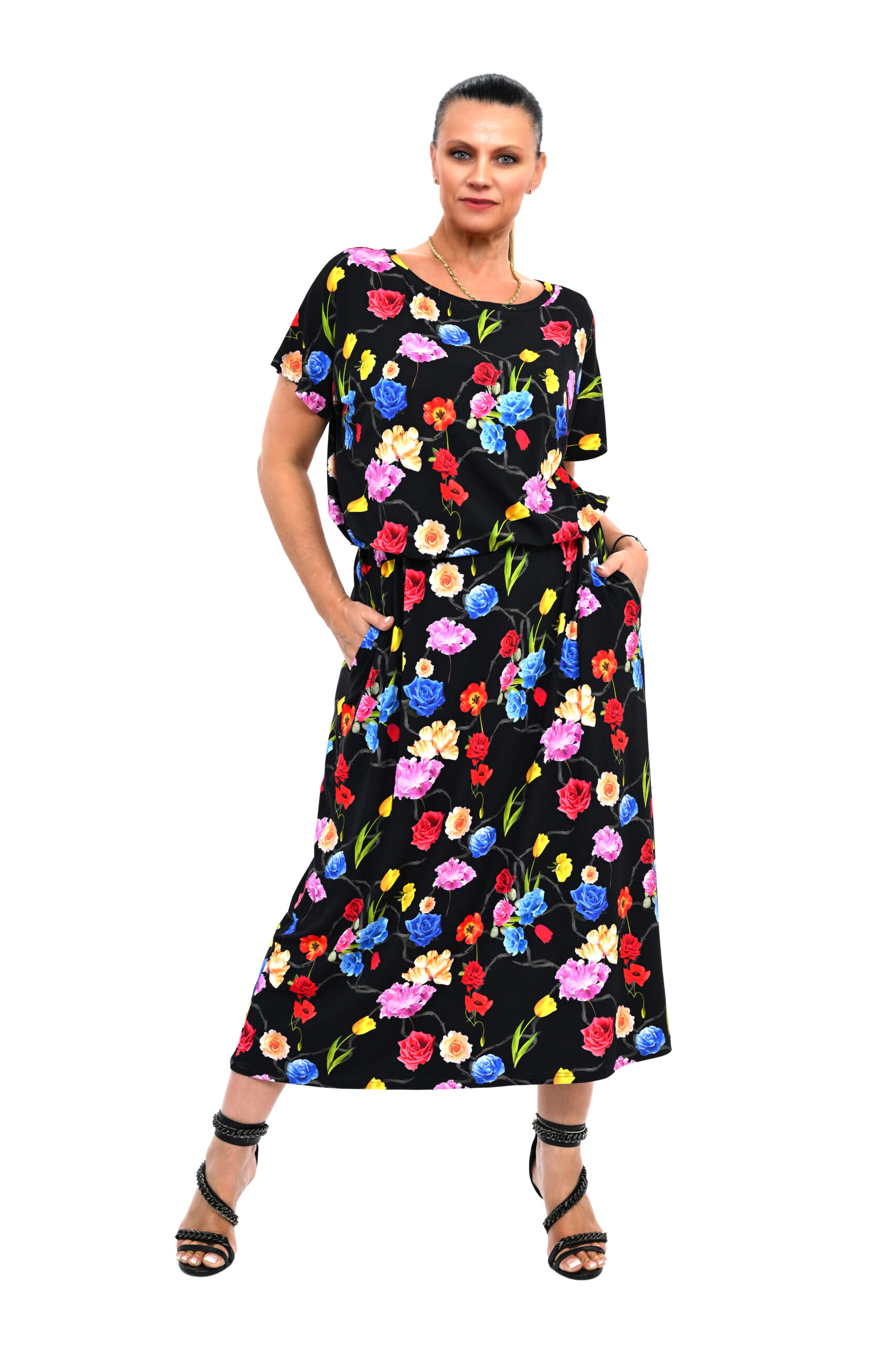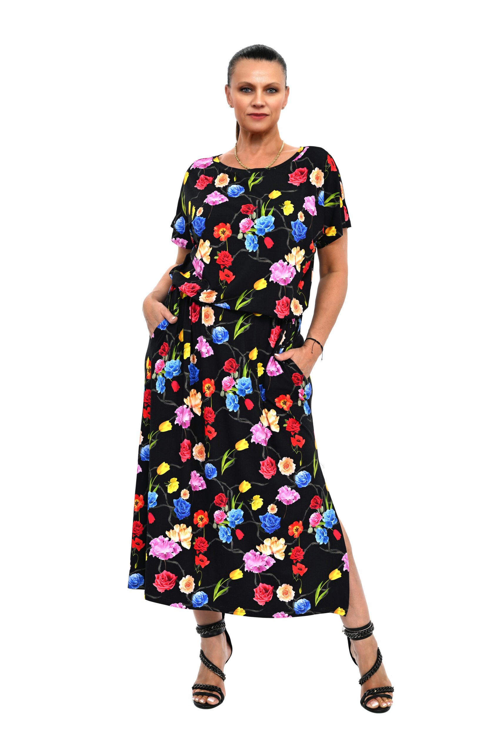 DZIEWCZYNY Nowość 2024/2025. Letnia wygodna sukienka w kwiaty LARA ,długość maxi , uszyta z mięciutkiej dzianiny wiskozy z elastanem,maxi w spokojny print. Materiał: 95%-wiskoza, 5%-elastan