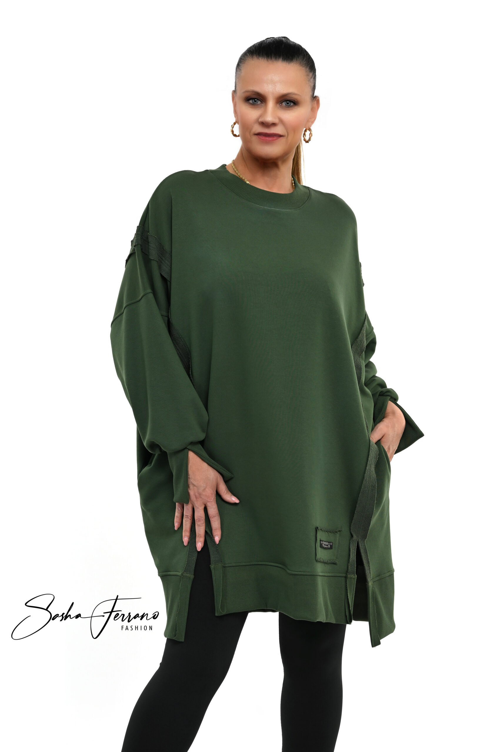 Stylowa bluza PIXI oversize w kolorze oliwkowym zapewnia wygodę i styl