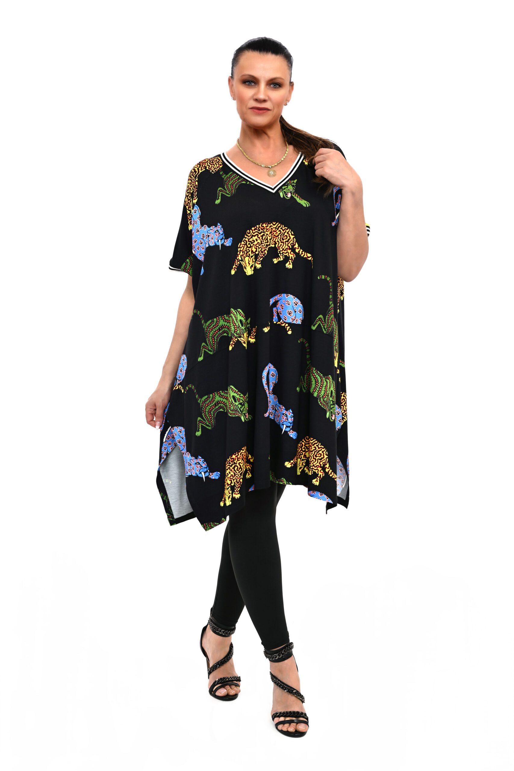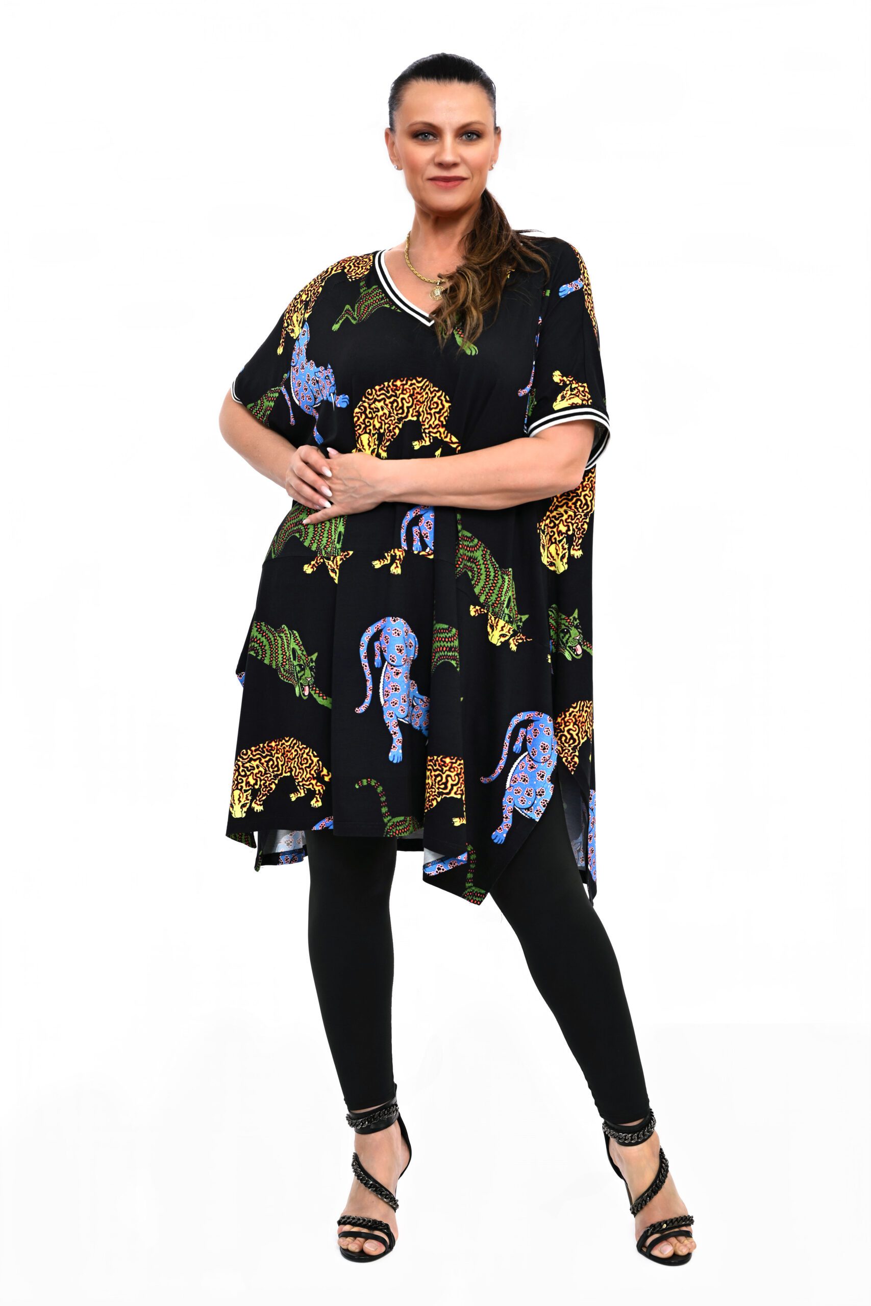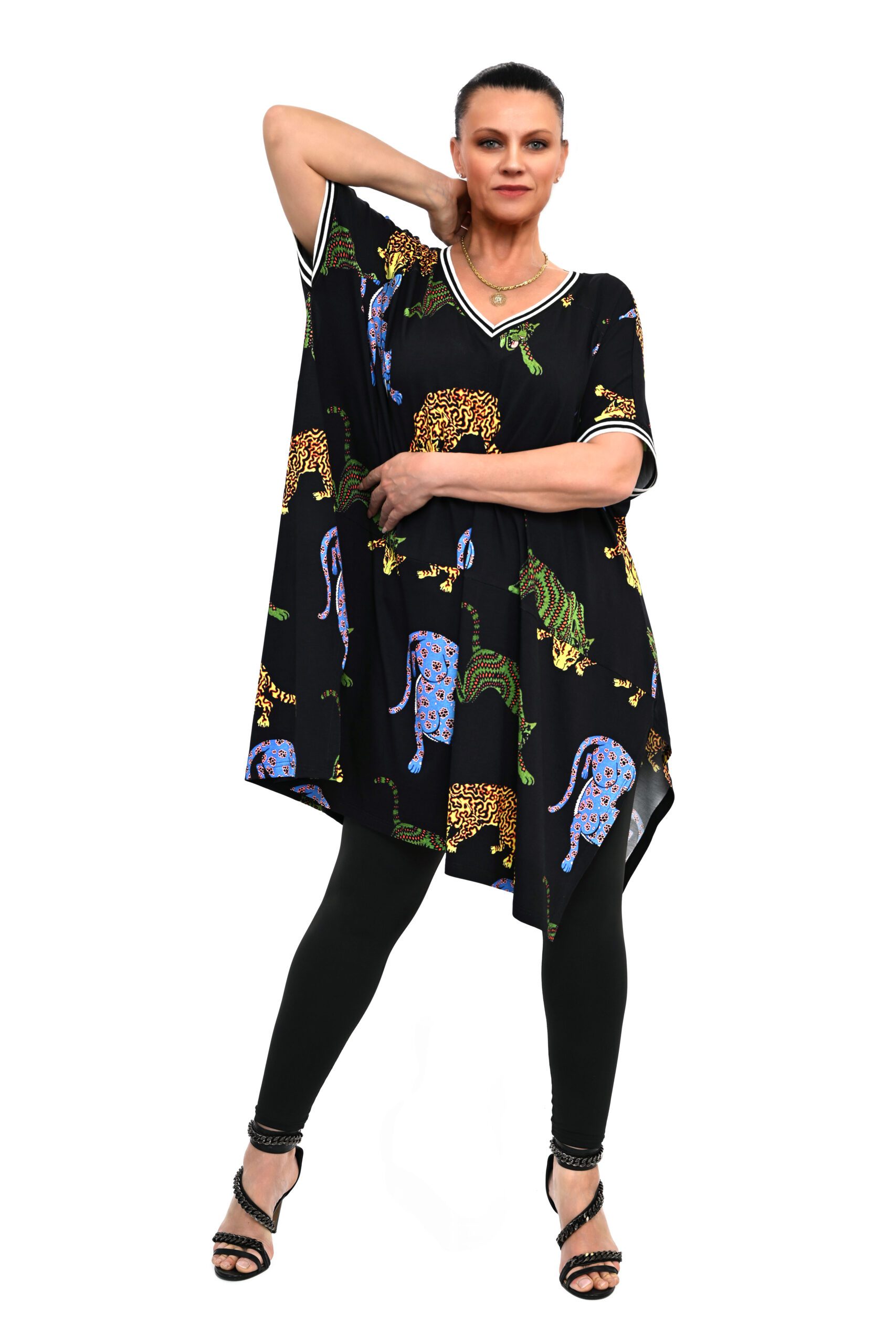 Tunika LOLA oversizowy krój uszyty w niesamowite printy, z najwyższego gatunku wiskozy z elastanem, pasuje na rozmiary 42 do 56